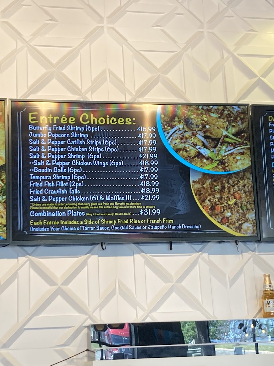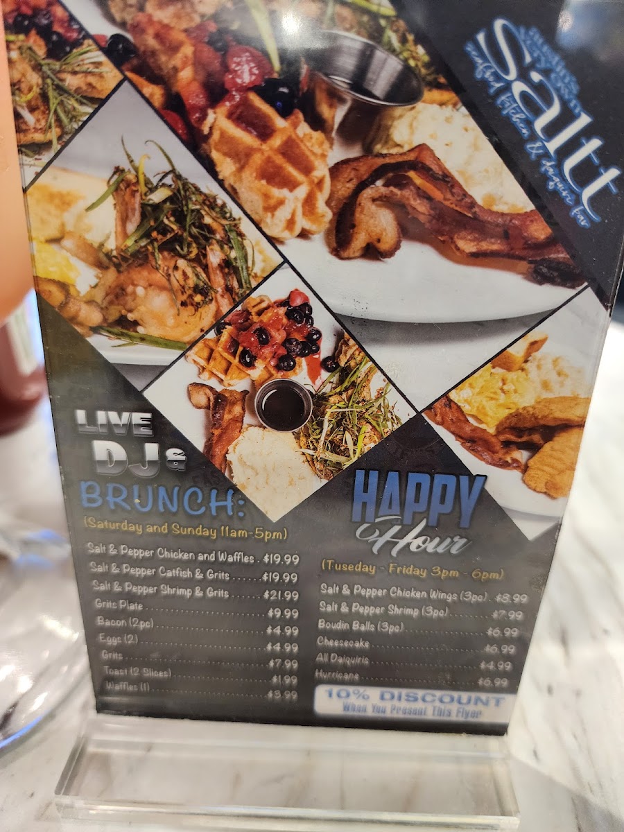As a reviewer wrapping up my experience with the menu at Austin's Very Own Saltt on W Anderson Lane, I’d describe it as a well-rounded showcase of comfort seafood and bold Southern flavors that feels both indulgent and approachable. The menu moves seamlessly from simple refreshments like Sparkling Water, Bottle Water, and Fountain Drinks into a strong taco lineup, where options such as Taco Mix & Match, Salt & Pepper Shrimp Taco, Grilled Shrimp Tacos (4), Fried Crawfish Tacos (4), and Fried Fish Tacos (4) stand out for variety and flexibility. The sides reinforce that comfort-food identity, with staples like Cilantro Rice, Shrimp Fried Rice, Steamed Vegetables, Salt And Pepper Fries, and French Fries offering familiar pairings to balance the richer entrées. Desserts provide a sweet and playful ending, ranging from Turtle Cheesecake and Red Velvet Cheesecake to the fun Birthday Waffle Topped With Whipped Cream, Oreos And Chocolate Sauce, all thoughtfully combined in the Dessert Trio (Red Velvet, Turtle Cheesecake, Waffle). For those ordering à la carte, choices like Garlic Pepper Wings (6) No Side, Garlic Pepper Wings (3) No Side, Boudin Balls (6) No Side, and Boudin Balls (3) No Side allow easy customization. The heart of the menu lies in the Salt & Pepper specialties, including S & P Chicken (6) And Waffles (1), S&P Chicken Strips (3pc), S&P Chicken Strips (6pc), S&P Wings (3pc), and S&P Shrimp (6pc), which emphasize the restaurant’s signature seasoning. Fried options such as Butterfly Shrimp (3pc), Tempura Shrimp (3pc), Jumbo Popcorn Shrimp, and Fried Fish Fillet (1pc) or Fried Fish Fillet (2pc) cater to classic cravings, while grilled plates like Grilled Shrimp (6pc) Steamed Vegetables & Garlic Toast, Grilled Shrimp (3pc) Steamed Vegetables, Grilled Catfish (2pc) Steamed Vegetables, and Grilled Catfish (1pc) Steamed Vegetables offer a lighter alternative. Add in MINI COMBINATION ENTREES, COMBINATION ENTREES, kid-friendly picks such as Popcorn Shrimp (Kids), Grilled Cheese Sandwich, and Salt & Pepper Chicken Strips (2) No Green Onions, No Red Chili, plus hearty seafood like Boiled Crab Cluster (1) Shrimp (6), and the menu ultimately feels complete, generous, and designed to satisfy a wide range of tastes in one sitting.